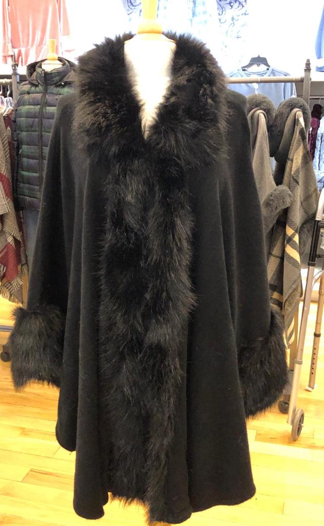 While the Farmer’s Almanac predicts a snowy period from now through late March, it is also calling for above normal temps! Yay! That means you could replace your quilted down coat, the one that makes you look like the Michelin Man, with one of these glamorous faux fur sweater coats, capes and ponchos!